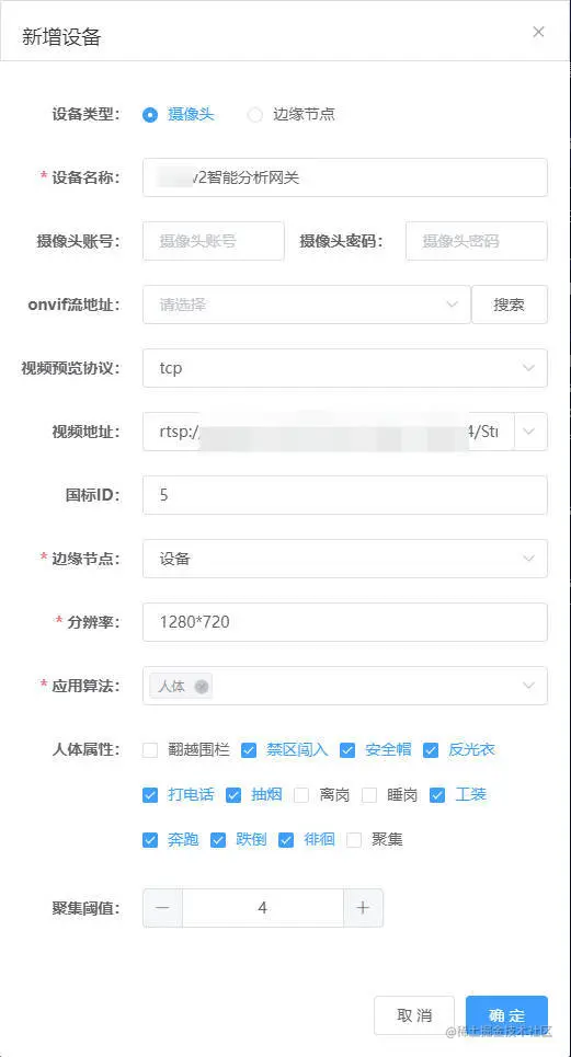 3)随后,点击刚刚添加设备的编辑按钮,在最下方的视频区域画框(划定入侵检测区域);