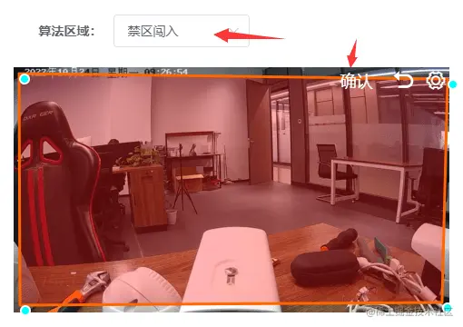 5)点击视频上方的确定按钮,可以在多个算法区域画框(划定入侵检测区域);