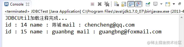 29 System.out.println("id : " + rs.getInt(1) + " name : " + rs.getString(2) + " mail : " + rs.getString(3));