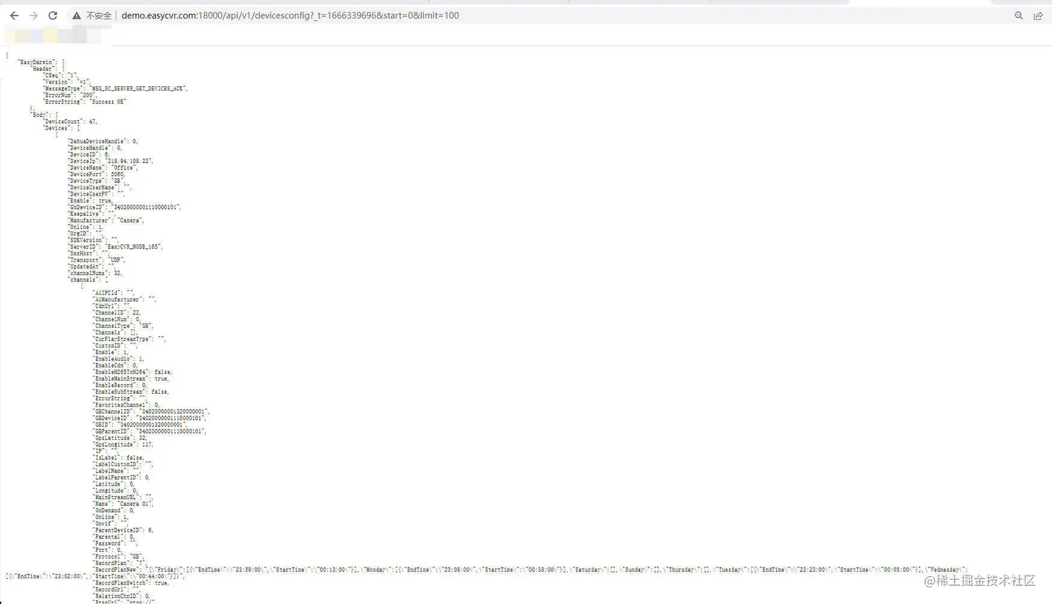 2、随后再调用查询设备以及通道的接口来获取通道信息;