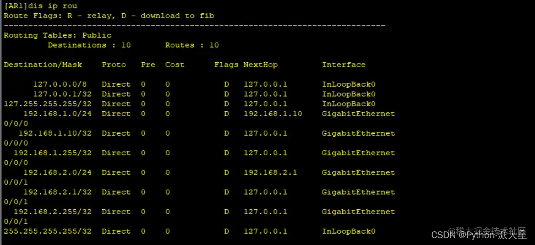 这里我们可以看到,我们的路由设备已经有这个路由了,证明我们的数据可以传输到那个网段