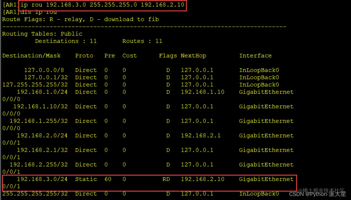 这边我们想要访问网段为192.168.3.0网段的设备,要经过下一跳的路由接口时192.168.2.10