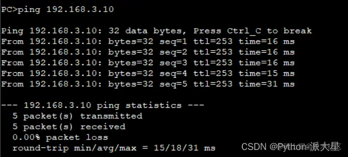 发现是有去到目标网段,但目标网段设备回信没有路由,3.0网段没有去1.0网段的路由,就是出去了,找不到回家的路了,那么我们也需要在对方网段设备连接的路由器也配置一个回来的路由表。