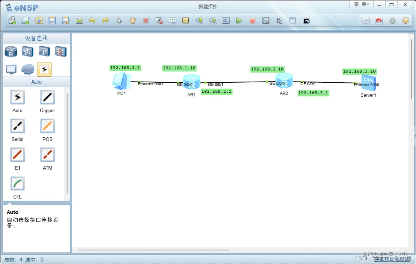 首先我们模拟一下,多个路由器之间,设备怎么互相访问。