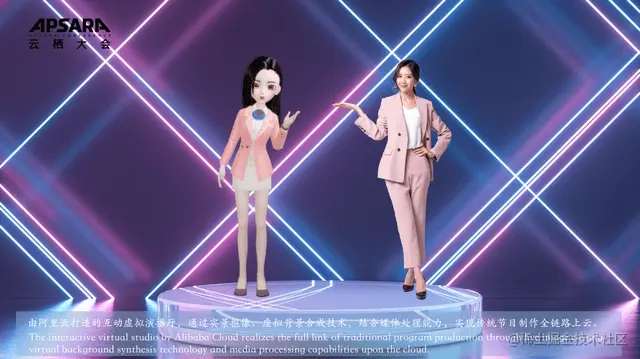 基于此,阿里云团队对虚拟演播厅的技术方案进行全面升级,通过云端多路实时实景抠像、虚拟背景生成与实时动态渲染技术,打造富有强沉浸感的实时演播产品,达到广电级的节目制作水准,真正实现虚实融合。