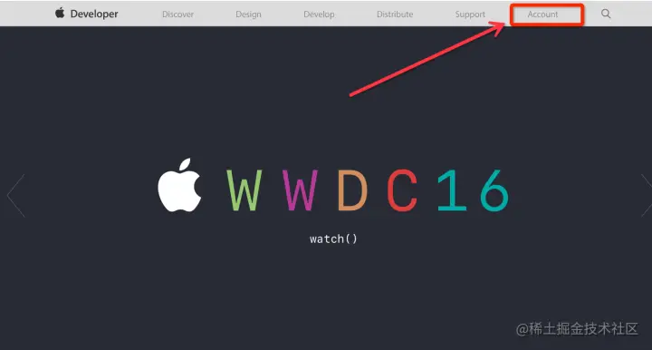 1.打开苹果开发者网,点击“Account”登录会员中心。