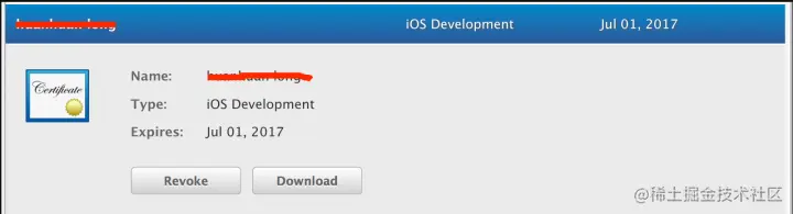 将以前的证书“revoke”掉, 然后重新生成一个新的证书。 这种方法是可以的,但是会造成相应的ProvisioningProfiles(PP文件)失效,这是小问题。但是又要重新申请证书甚至描述文件很浪费时间,所以不提倡这种做法。