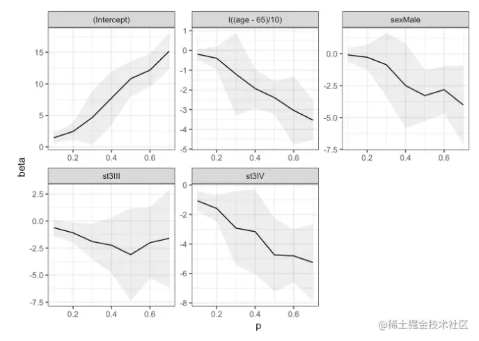 (Intercept) 1.44467 2.44379 4.65302 7.73909 10.81386 12.18348 15.19359