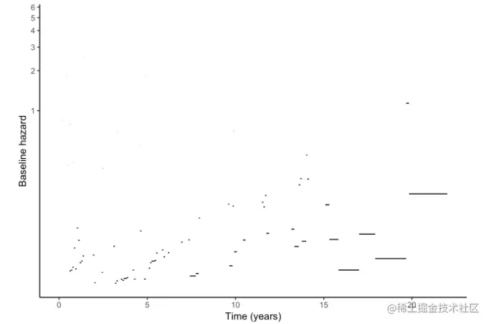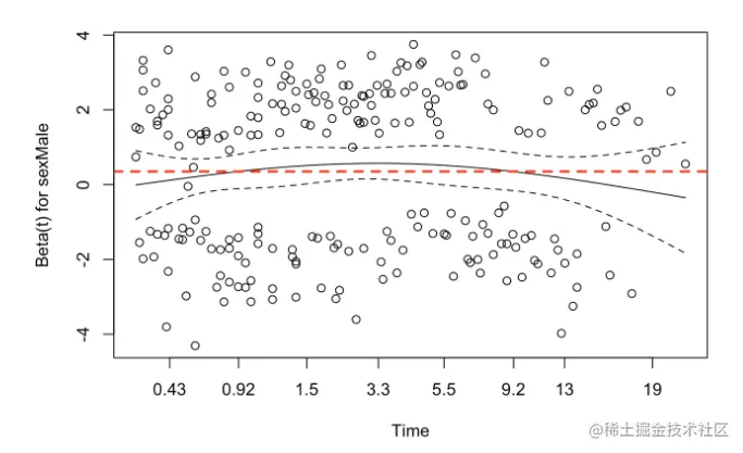 β0= 2.665 是参考组中死亡概率等于0.25的时间。另一个被解释为相对度量。