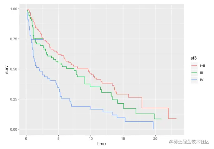 该信息可以直观地比较在肿瘤阶段的水平上分别估计的生存曲线。