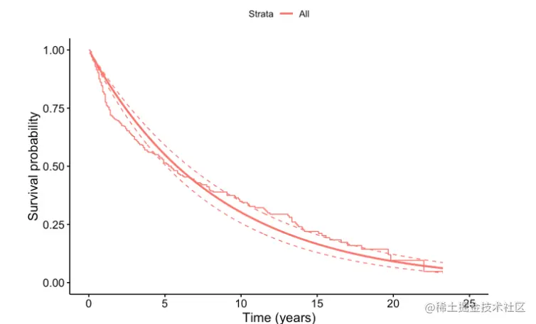 ggsurvplot()的survminer提供了估计的生存曲线的信息性说明。