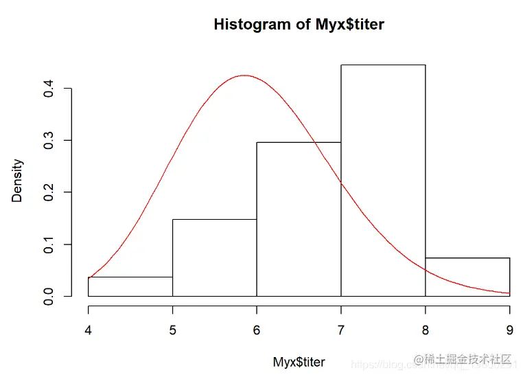 hist(Myx$titer,freq=FALSE)