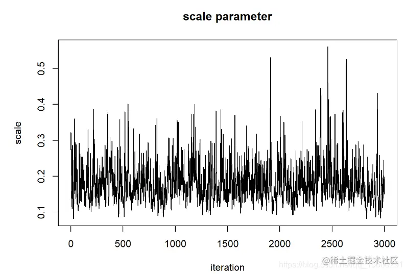 一种简单而直观的收敛诊断程序是 Gelman-Rubin诊断程序,该诊断程序基于简单的蒙特卡洛误差来评估链之间是否比应有的链距更大: