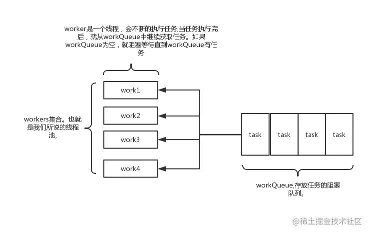 ScheduledThreadPoolExecutor执行时,submit(…)会向我们返回一个FutureTask对象。我们可以执行FutureTask.get()方法来等待任务执行完成。当任务成功完成后FutureTask.get()将返回该任务的结果。例如,如果提交的是对象Callable1,FutureTask.get()方法将返回null;如果提交的是对象Callable2,FutureTask.get()方法将返回result对象。二. ThreadPoolExecutor详解
