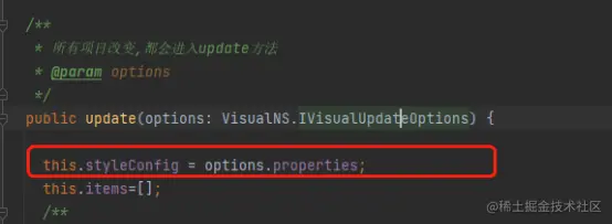 properties: 在 capabilities.json 中定义的属性模型(options.visual)。