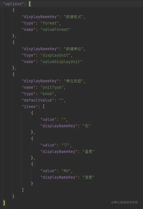 options:format 格式化,displayUnit 数据单位,enum 自定义下拉框,(使用方式后面详细介绍)