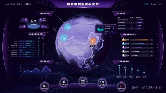 数据可视化大屏的酷炫效果相信大家都已经见识到了经常是这样的: