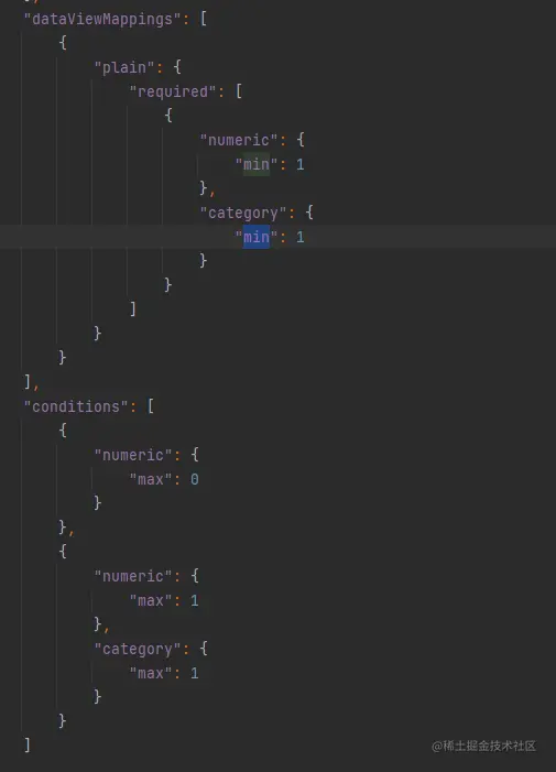 conditions 组合条件,{},{}属于或者关系,下面示例中可以理解为: