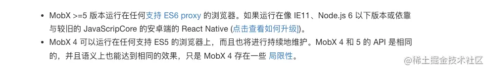ObservableValue 只是最基础的数据类型,针对于 array map set 等 mobx 类似于vue 一样 重写了他们的属性方法 达到监控数据变化。所以mobx 5.0+ 也做了类似于vue3 的改动 ,引入proxy 达到复杂数据的change 监控.