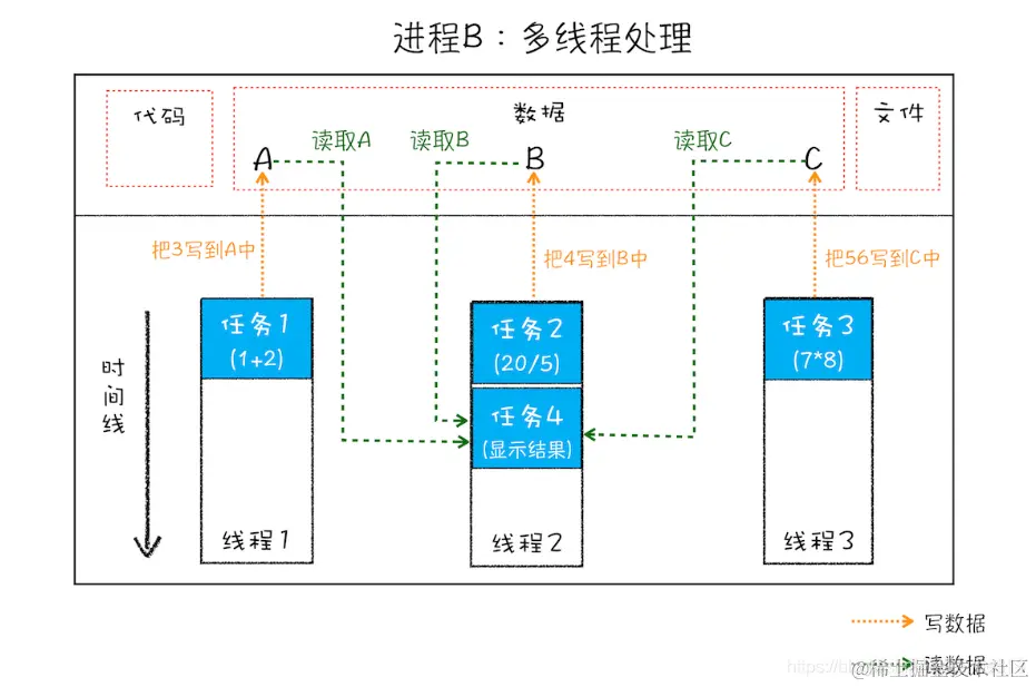启动一个程序的时候,操作系统会为该程序创建一块内存,用来存放代码、运行中的数据和一个执行任务的主线程,我们把这样的一个运行环境叫**