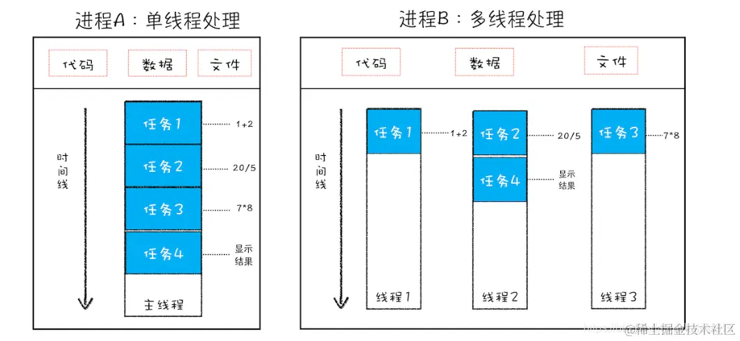 线程是依附于进程的,而进程中使用多线程并行处理能提升运算效率。