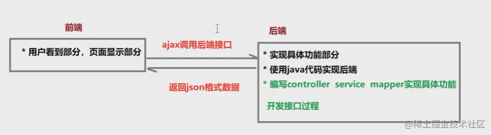 就是前端请求后端接口,后端响应json格式数据给前端,前端解析json格式数据并展示在网页。