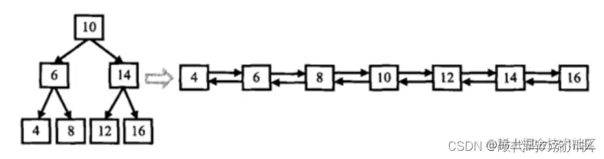 1.要求不能创建任何新的结点,只能调整树中结点指针的指向。当转化完成以后,树中节点的左指针需要指向前驱,树中节点的右指针需要指向后继