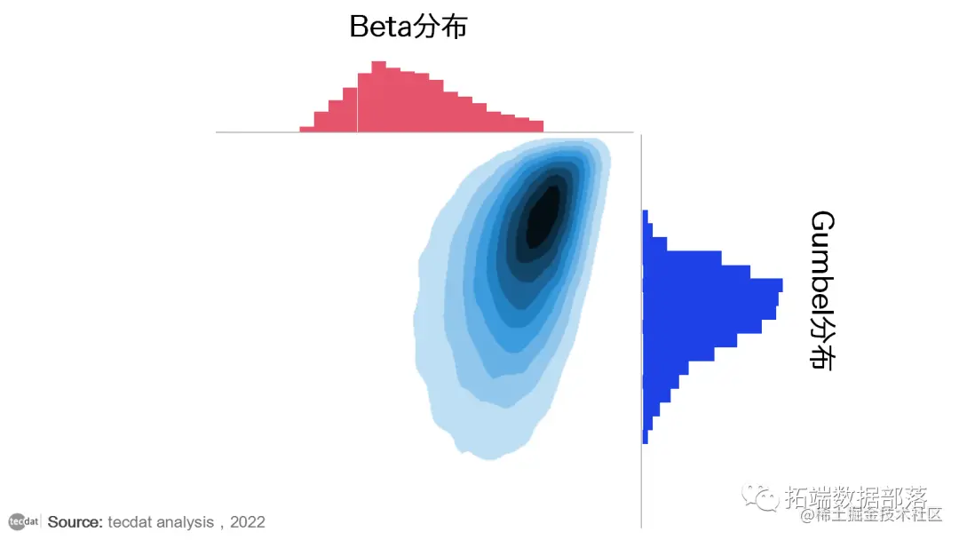 现在,我们在上面的基础上(构建的高斯Copula函数),把边缘分布换成Beta分布和Gumbel分布: