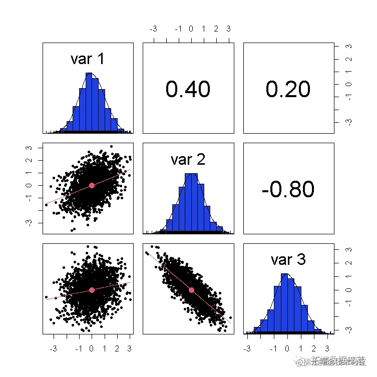 1.从相关矩阵模拟相关的多元正态数据。边缘分布都是标准正态分布。