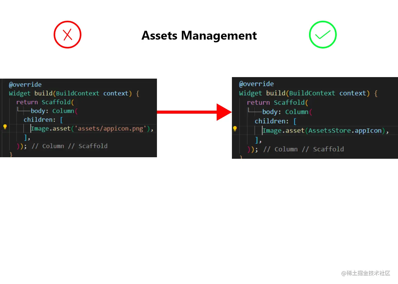 管理资产可能非常困难。如果你想在你的应用程序中多次使用一个图像,你必须一次又一次地指定路径。所以有一个更简单的解决方案。您只需要创建一个 AssetStore 类,其中存储所有资产,现在您可以使用 AssetStroe.appIcon 轻松地调用资产。