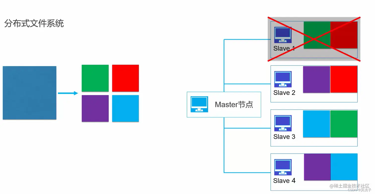 数据文件先分块,在分布式存储到各个文件