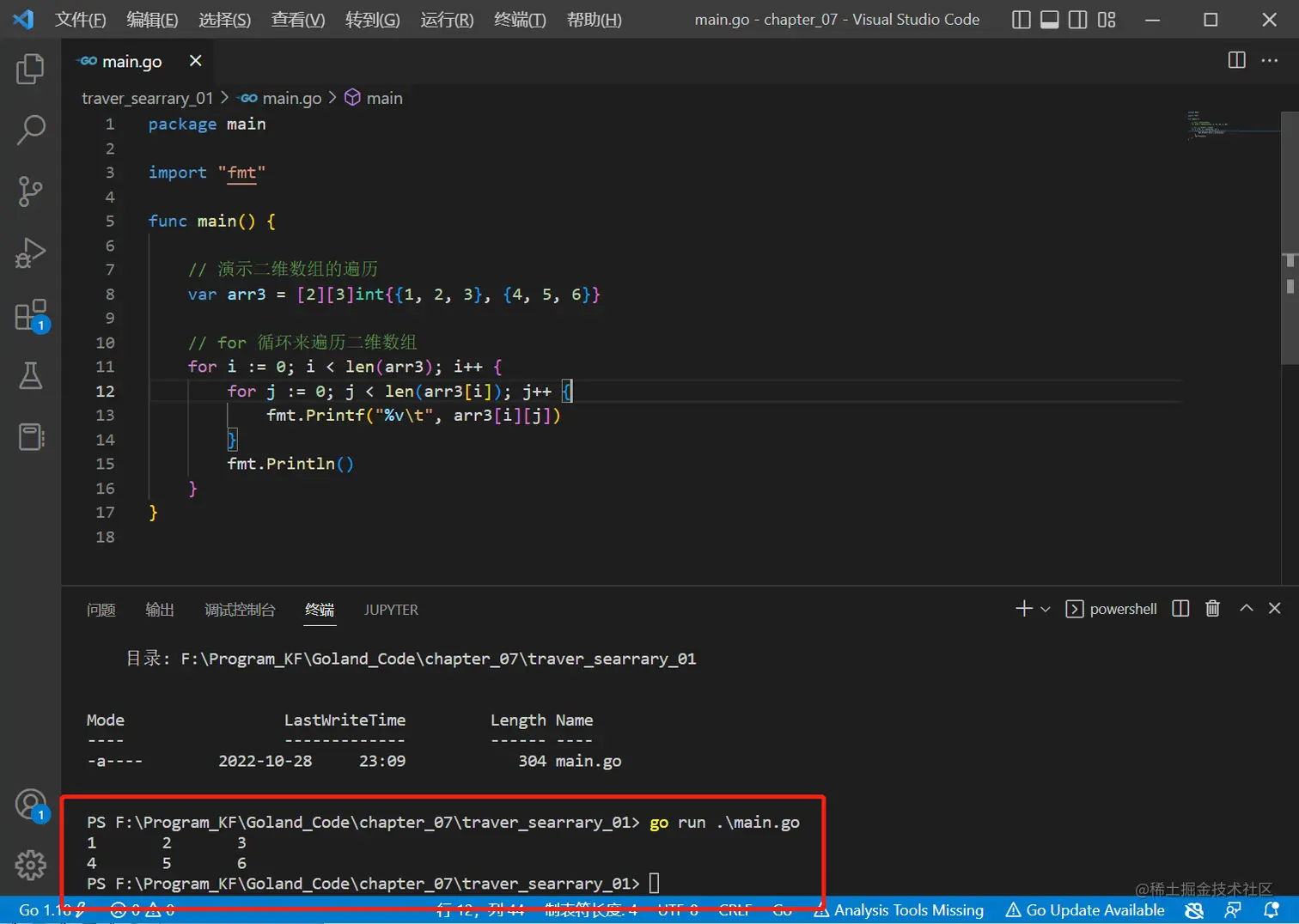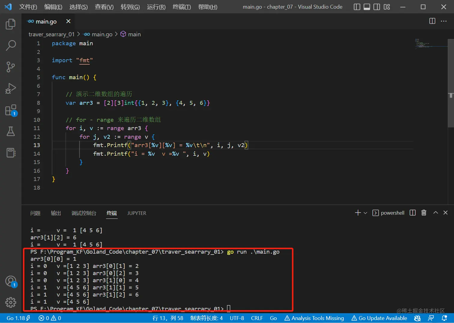 // for - range 来遍历二维数组