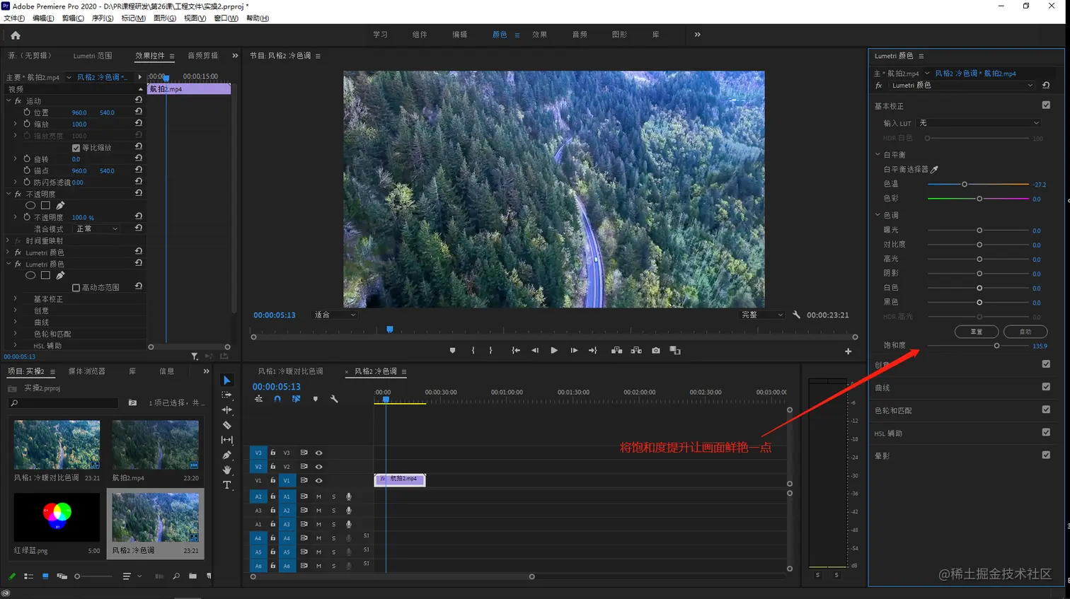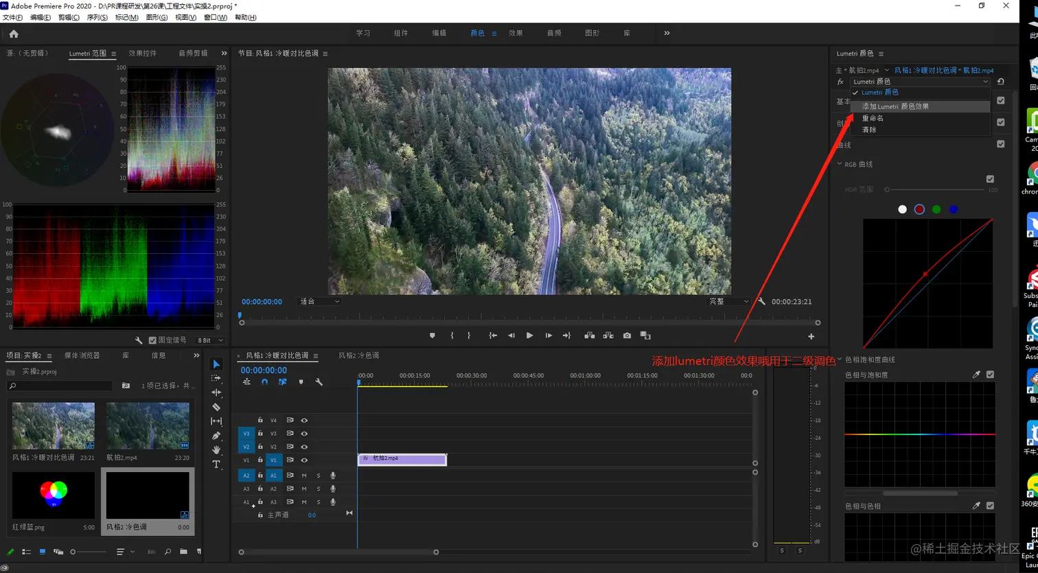 - 把对比度数值提大,完成蓝绿风格冷色调调色