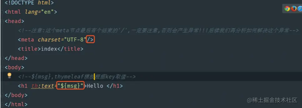 在index.html文件中,我这里先简单的使用了Themeleaf的一个th:text标签。