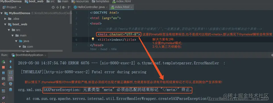 org.xml.sax.SAXParseException: 元素类型 "meta" 必须由匹配的结束标记 "</meta>" 终止。