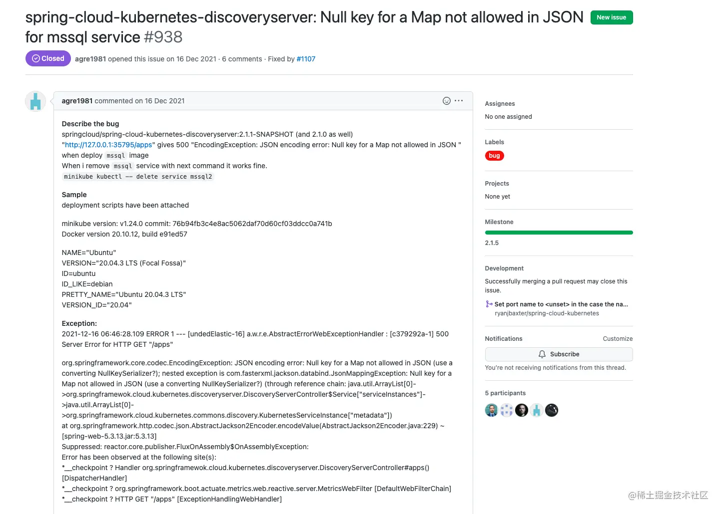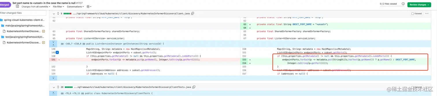 可以看到这里在获取port name的时候没有默认值处理,所以spring cloud kubernetes 官方维护人员也说这是一个bug,并修复了他