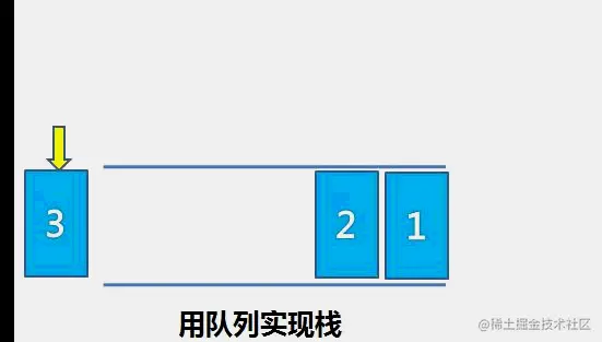 - 模拟出栈的实现原理-- 由于在入栈时保证队列中新加入队尾的元素被移到了队头,出栈只需弹出队头元素即可。