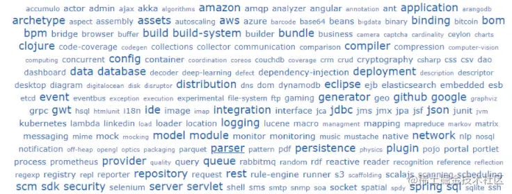 当前业界流行的专业技术(图片来自:mvnrepository.com/tags):