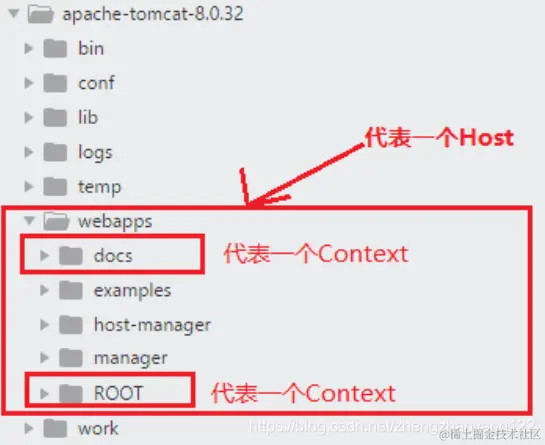 Context 和 Host 的区别是 Context 表示一个应用,我们的 Tomcat 中默认的配置下 webapps下的每一个文件夹目录都是一个Context,其中 ROOT目录中存放着主应用,其他目录存放着子应用,而整个 webapps就是一个 Host站点。我们访问应用Context 的时候,如果是 ROOT 下的则直接使用域名就可以访问,例如:www.ledouit.com,如果是 Host(webapps)下的其他应用,则可以使用 www.ledouit.com/docs 进行访问,当然默认指定的根应用(ROOT)是可以进行设定的,只不过 Host站点下默认的主营用是 ROOT目录下的。