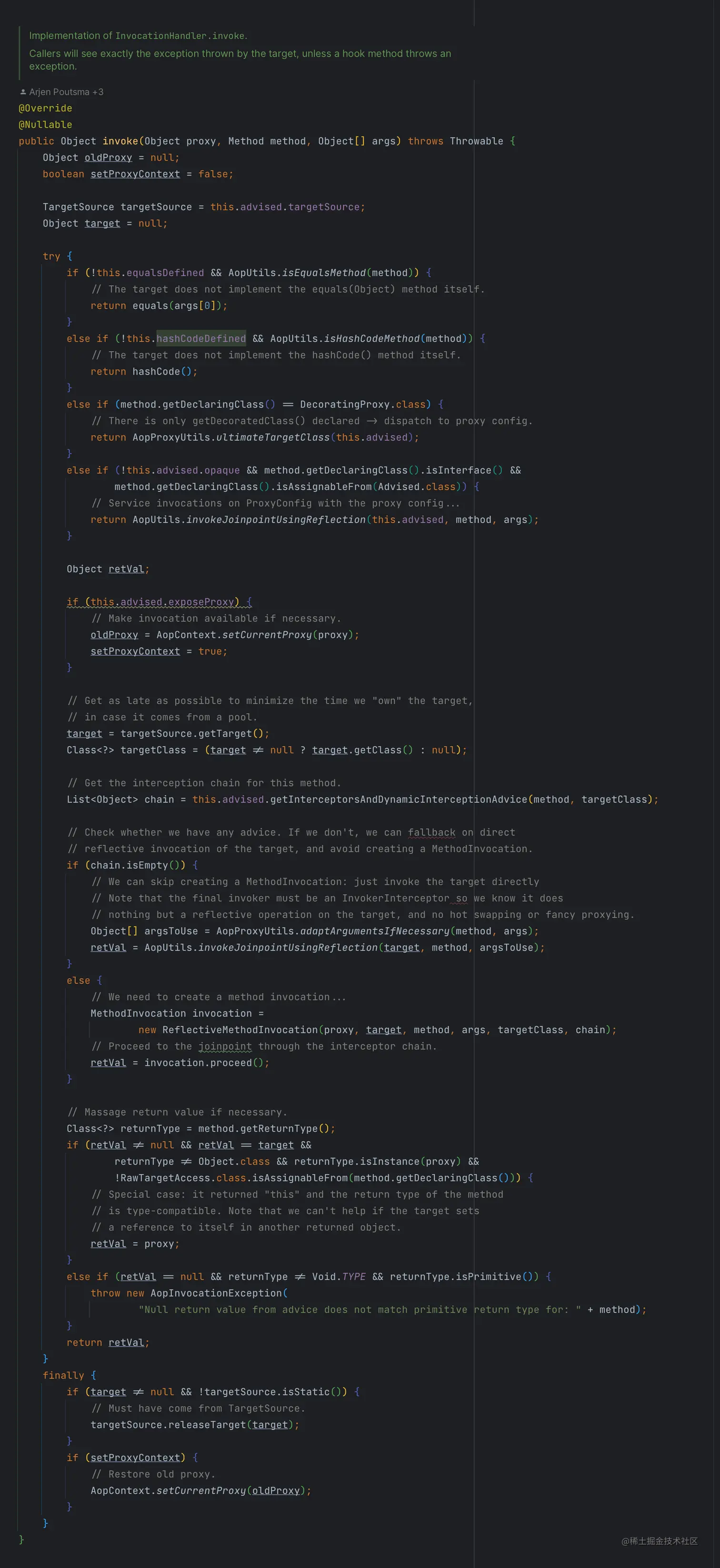 在次回顾一下 JdkDynamicAopProxy 的invoke方法源码。