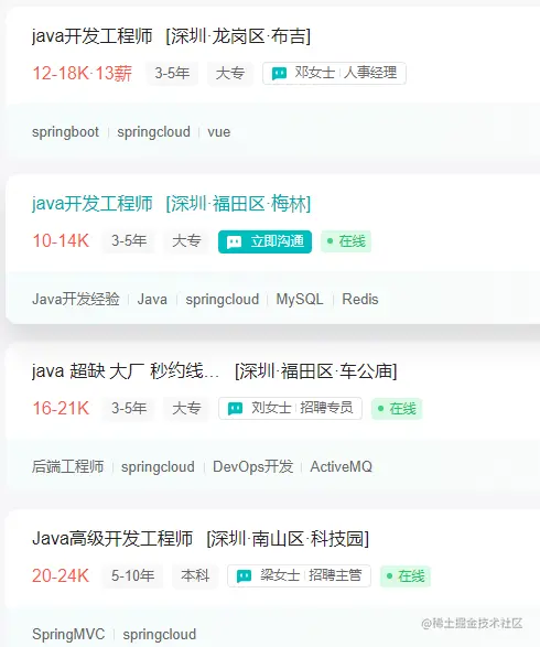 从上图可以看出,你不管是想找个Java初级还是高级,SpringCloud都是你必须要掌握的点。要是有工作经验的朋友还好,公司可能用的就是SpringCloud框架,简历倒是可以放心大胆的写熟悉甚至精通;没工作经验的那就只能通过网上找资料自学,学得不成体系还没有实际落地经验,面试官一深入询问一般就倒下了。