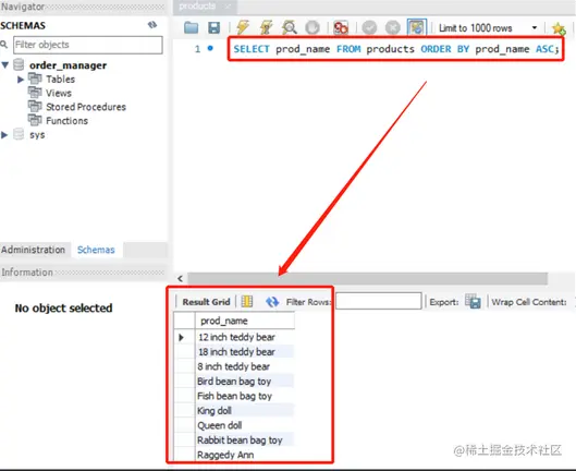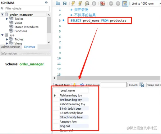 接下来我们对 prod_name 列进行排序。排序使用 ORDER BY 关键字,后面跟着要排序的列。例如: