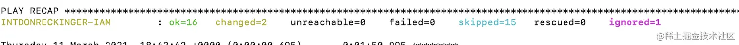 就像下面这样,显示有多少是OK的,这意味着已经存在或OK,有多少东西你用你的playbook改变了,有多少是失败的等等: