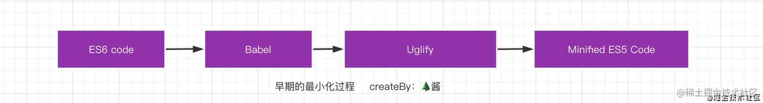 随着浏览器对es6特性支持更多,我们的代码最小化过程如下