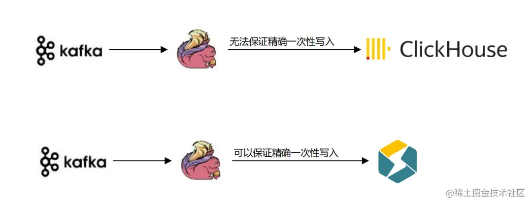 - Flink 只需保证重试的 Label 不变,即可确保数据导入是精确一次性的。