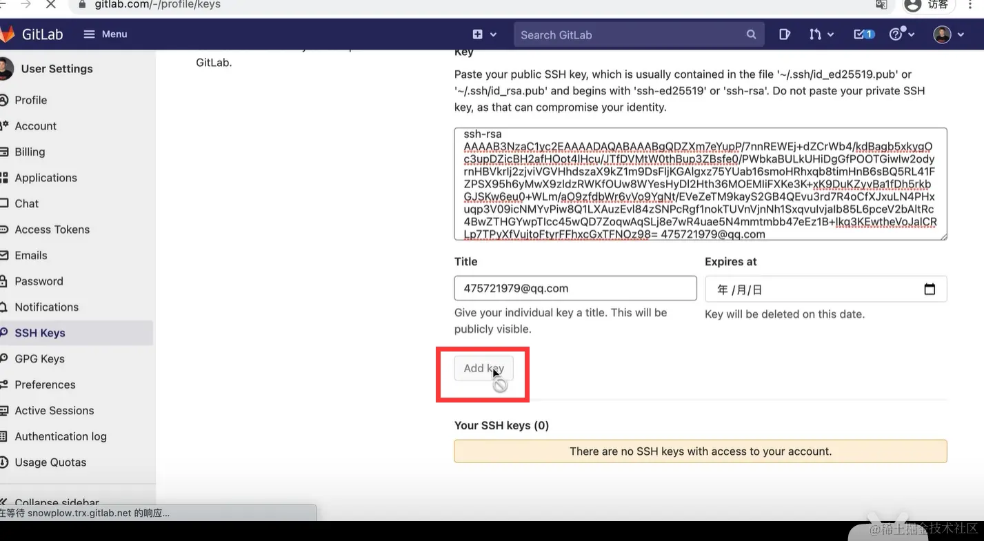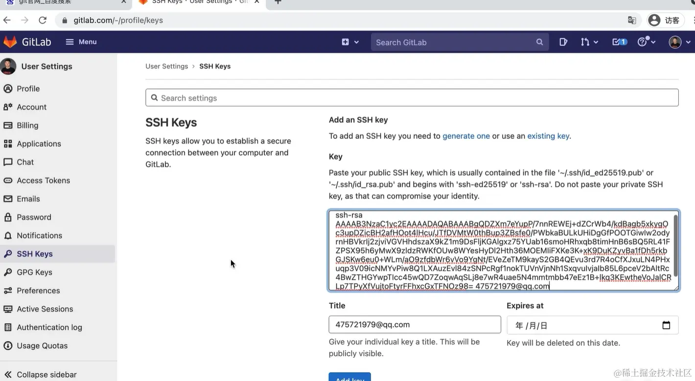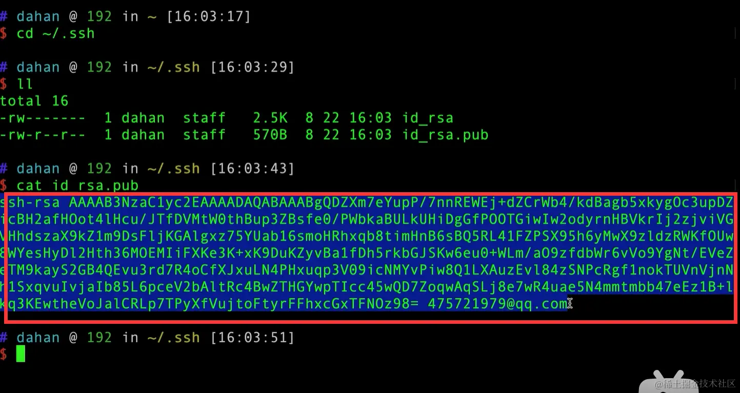 - 本地配置完毕 需要生成一个公钥 ssh-keygen -t rsa-C"本地邮箱 "