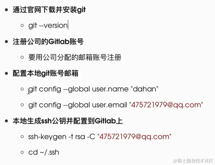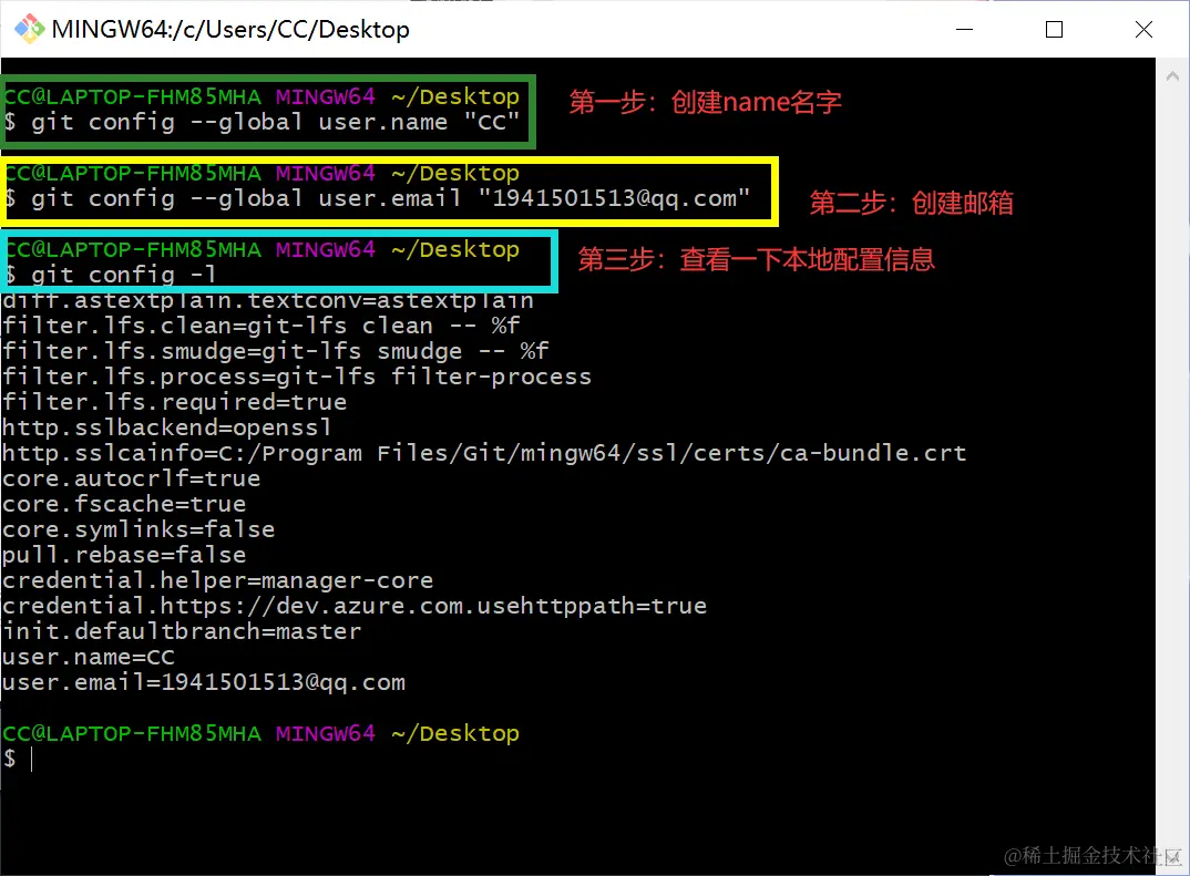 - 配置本地邮箱 git config --global user.email "本地邮箱"