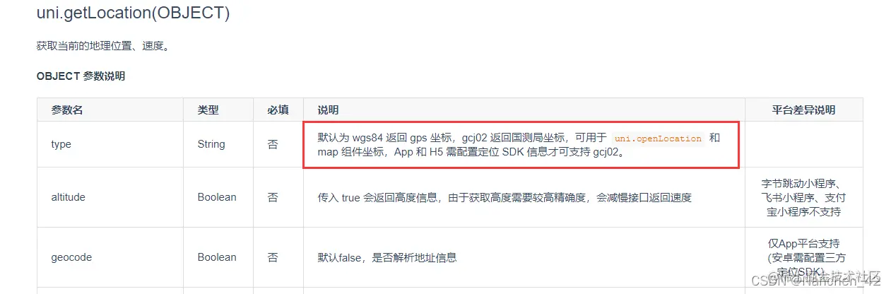这里面的wgs84 uniApp官网中也给出了详细的解释