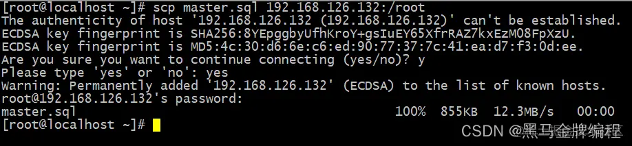 scp master.sql 192.168.126.132:/root