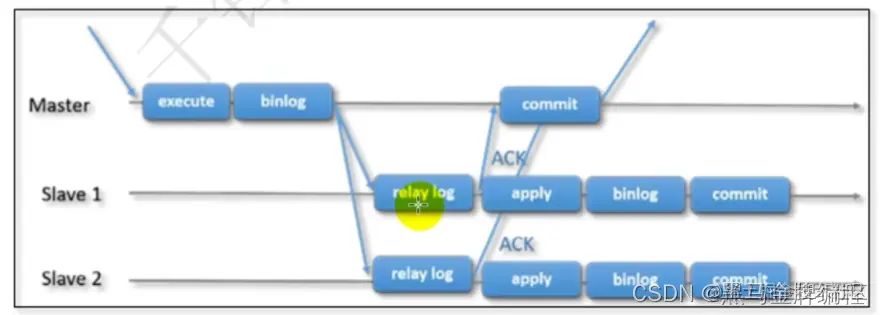 主节点执行和提交事务,然后将它们(异步地)发送到从节点,以重新执行(在基于语句的复制中)或应用(在基于行的复制中)。